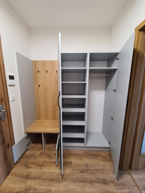 předsíňovou stěnu s šatní skříní, věšákovým panelem a botníkem